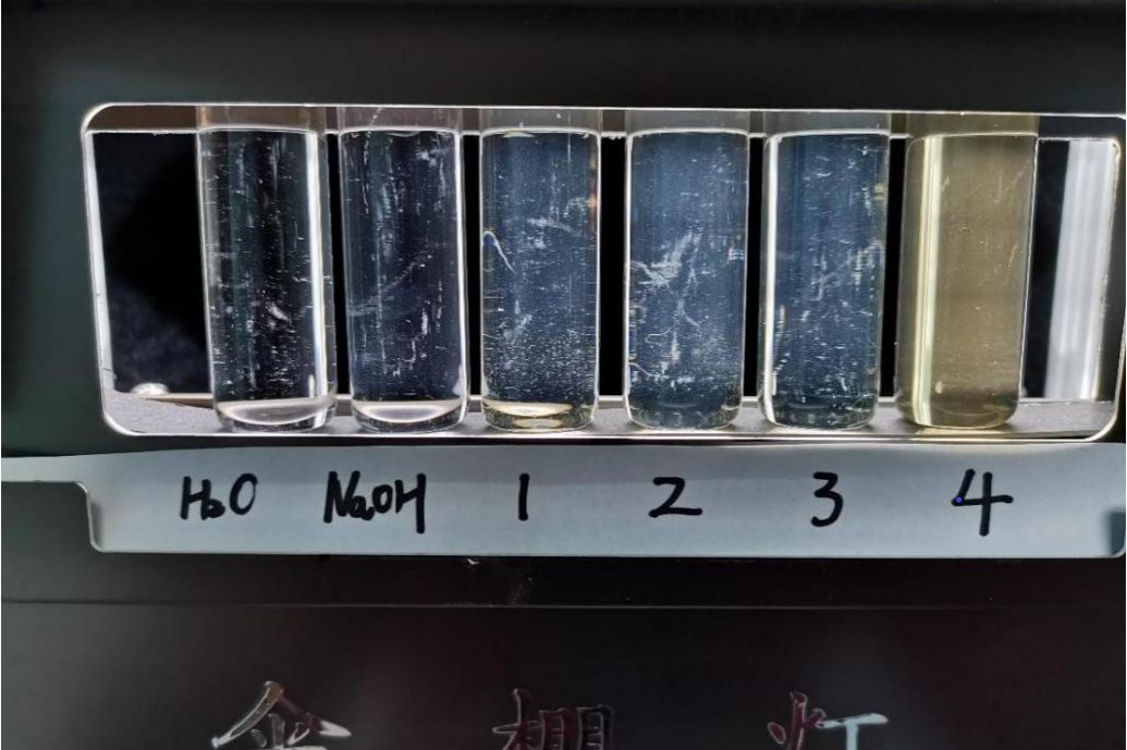 1号&3号样品的浊度小于2号样品,4号样品的浊度最大,最不澄清