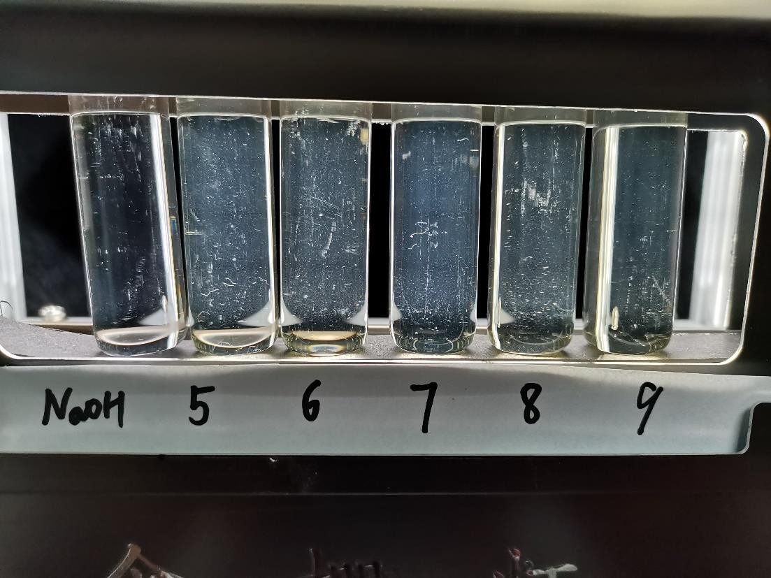 纯净水和氢氧化钠的溶液基本澄清;