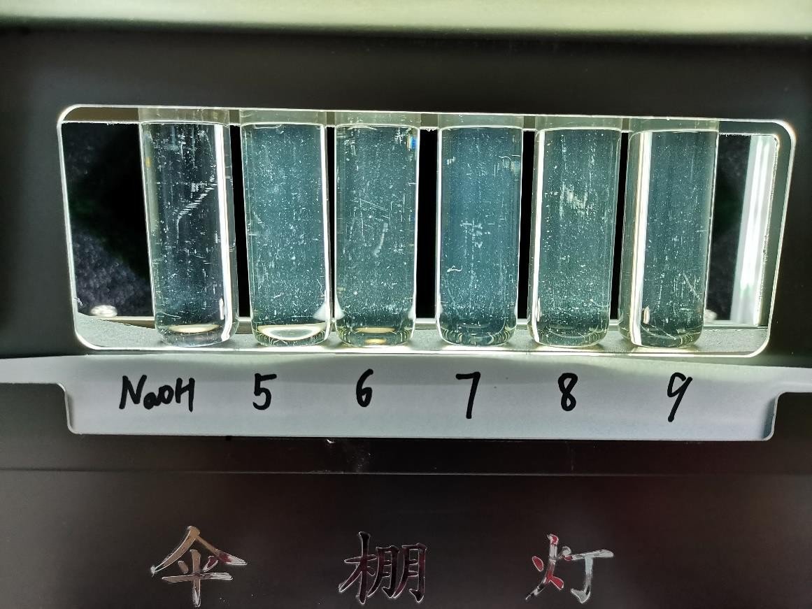 原料药经过氢氧化钠溶液复溶之后,浊度相比较氢氧化钠溶液有一定增加;